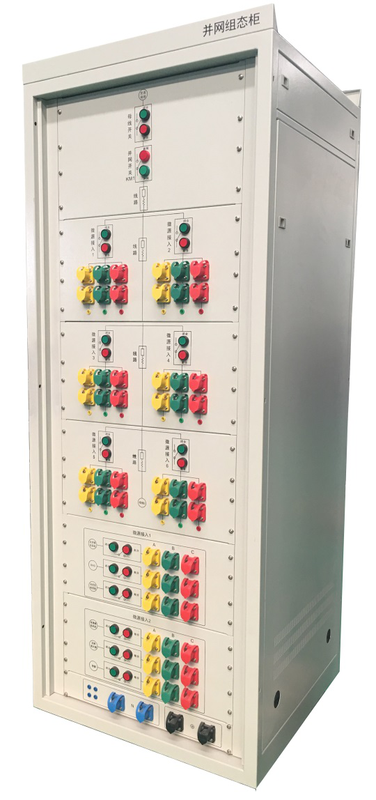 多年来,北京群菱能源科技有限公司一直致力于为各新能源科研机构、各高等高职院校提供多功能微电网模拟仿真实验平台。为此,在总结了客户的实验经验基础上,推出了微电网组态柜,将交流母线接入电网、各类型分布式发电源、储能系统、各类型模拟负荷等设备的接入端口汇总到组态柜上,同时配备远控电操、接触器、电能参数采集模块等,实现中央控制器统一远程控制各设备,并实现自动切换实验拓扑结构功能。